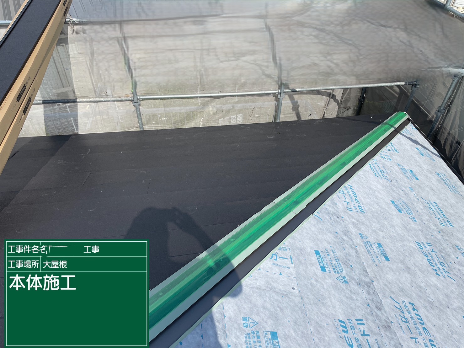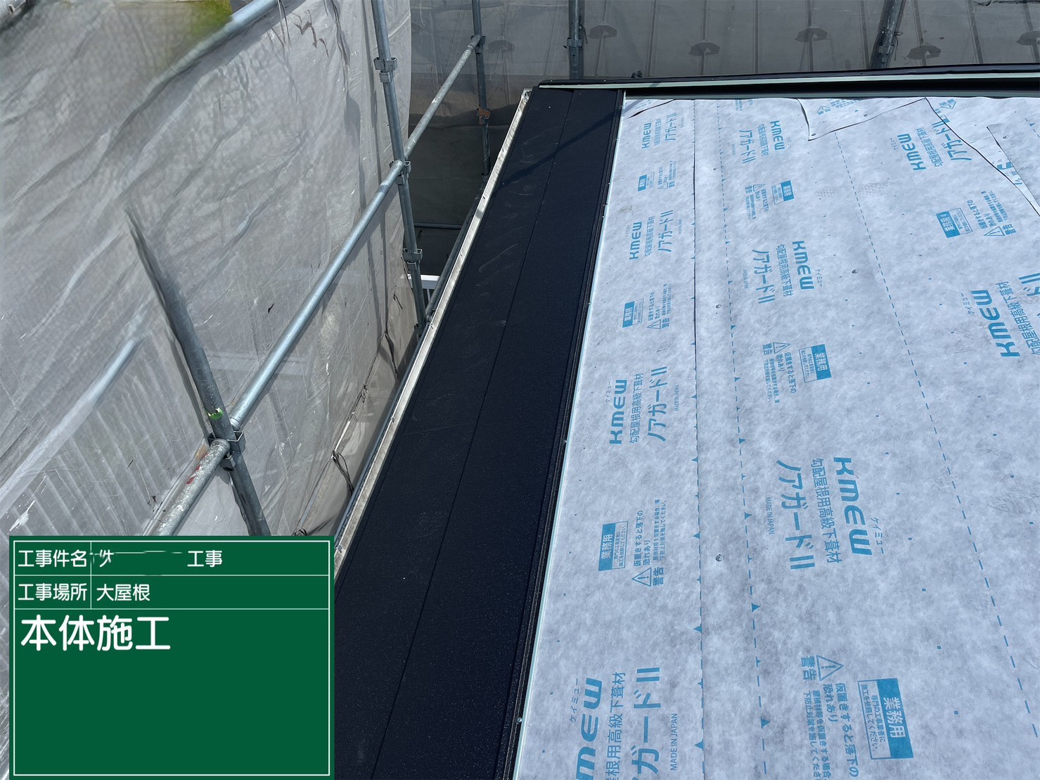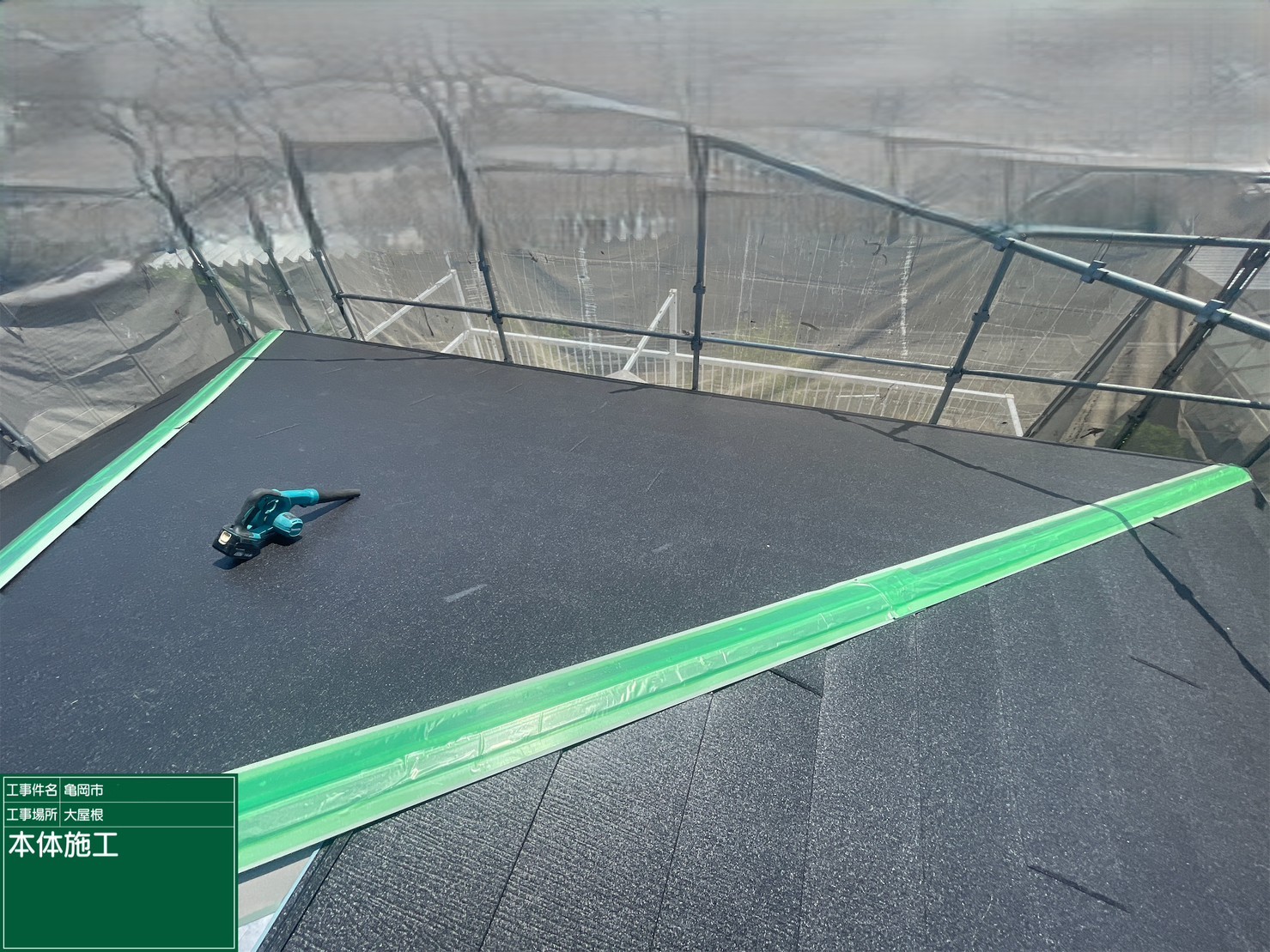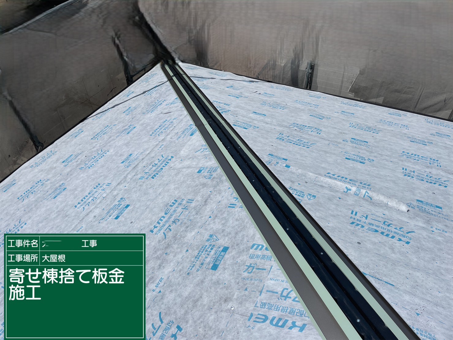 京都府亀岡市 屋根重ね葺き工事(カバー工法)ルーフィング施工
