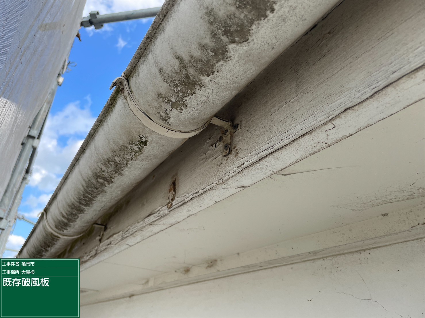 京都府亀岡市 屋根重ね葺き工事(カバー工法)破風板現状