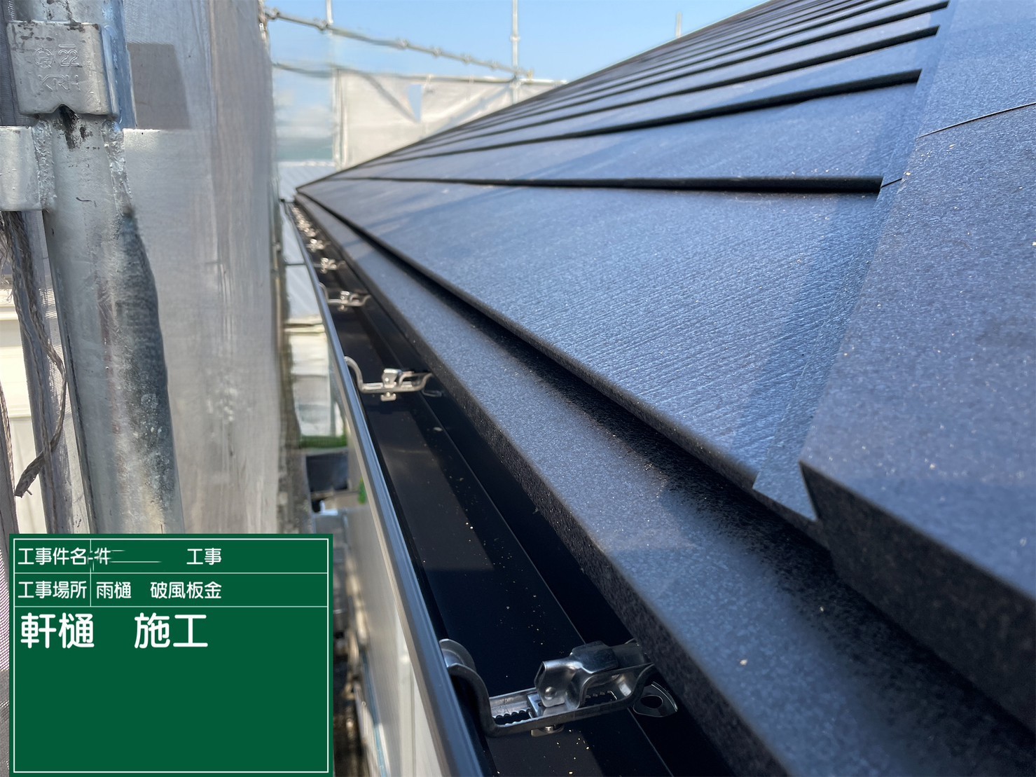 京都府亀岡市 屋根重ね葺き工事(カバー工法)雨樋ブラケット施工
