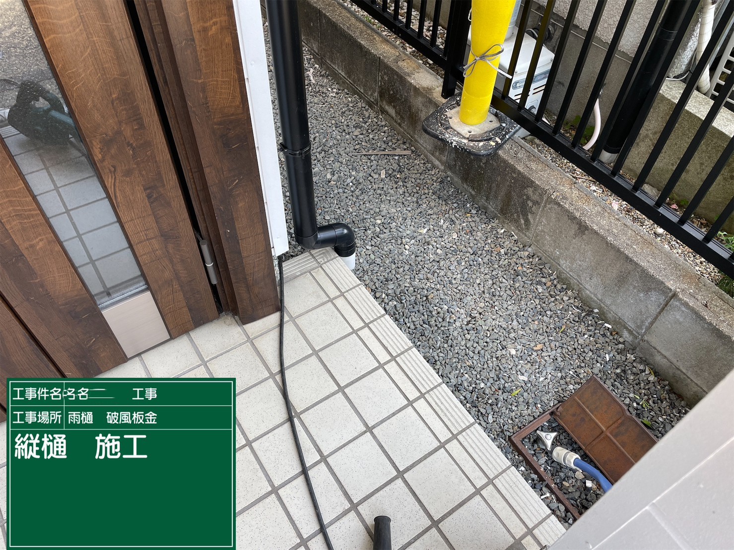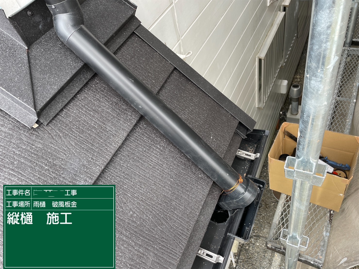 京都府亀岡市 屋根重ね葺き工事(カバー工法)竪樋施工