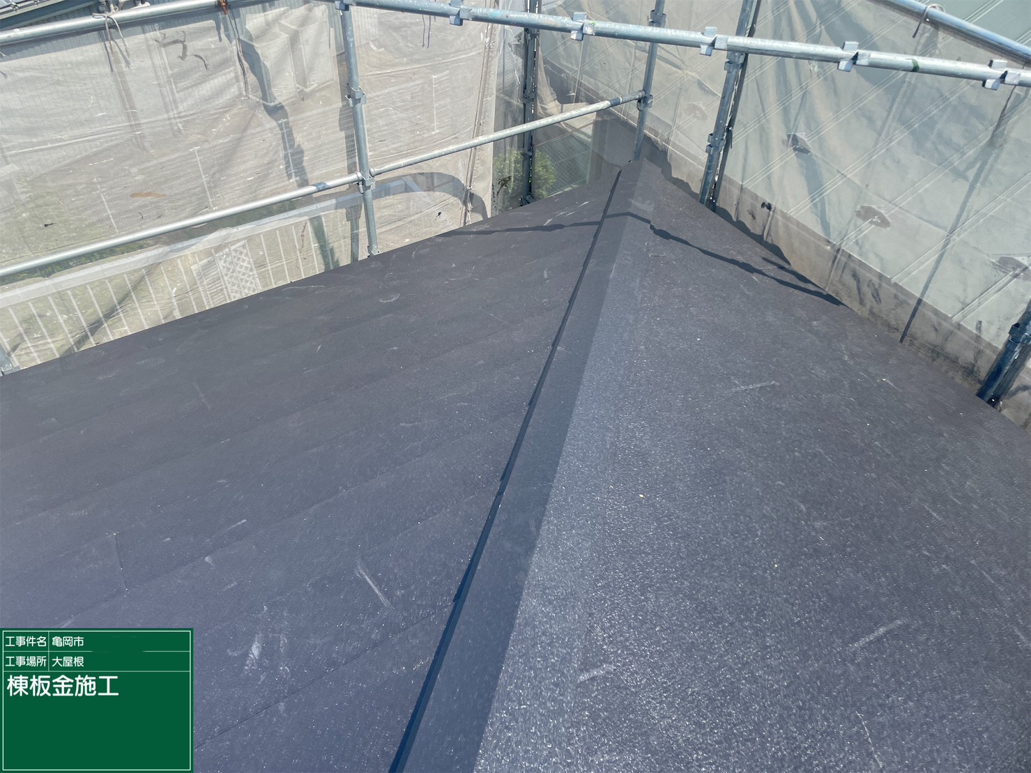 京都府亀岡市 屋根重ね葺き工事(カバー工法)福泉工業シルキーG2 金属瓦本体施工