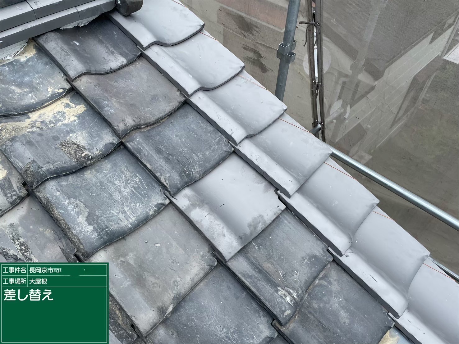 京都府長岡京市 屋根修繕工事 瓦差し替え