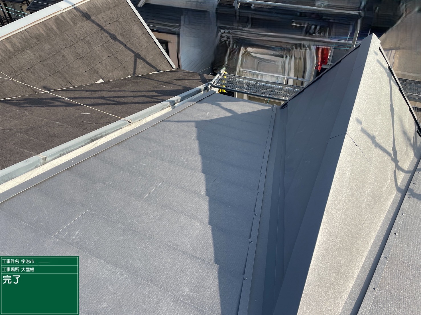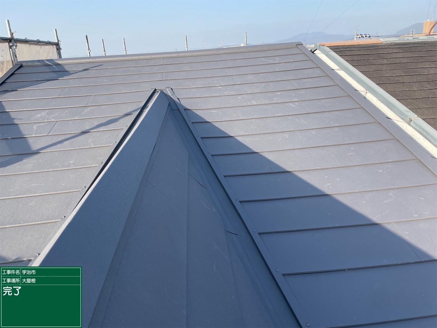 京都府宇治市で、屋根重ね葺き工事(カバー工法)を行いました。